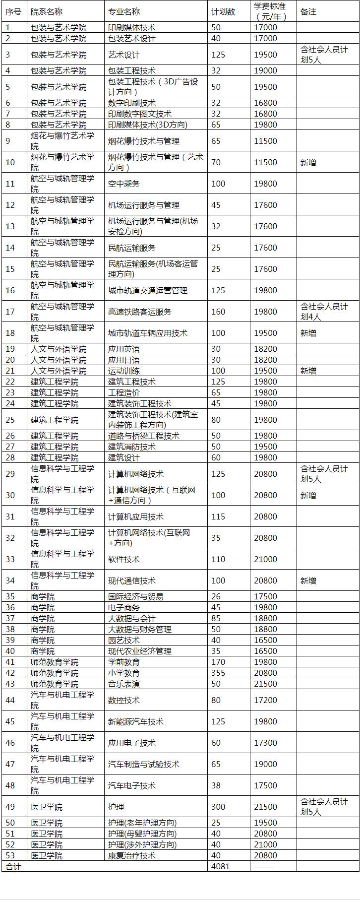 湖南都市职业学院单独招生总计划4081,招生专业53个。(所有专业均不限招生科类,即物理类、历史类、职高对口类考生均可报考)