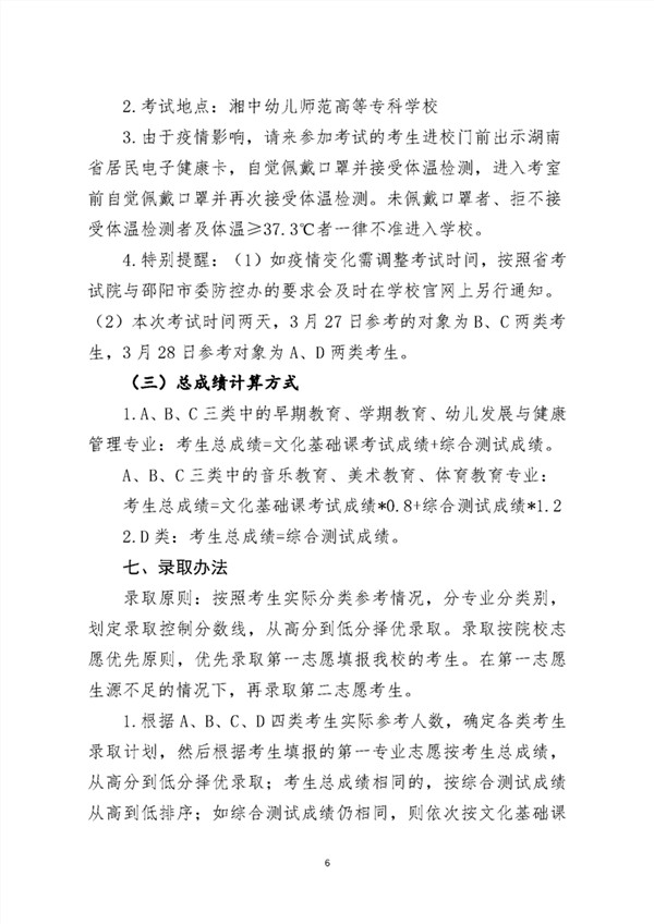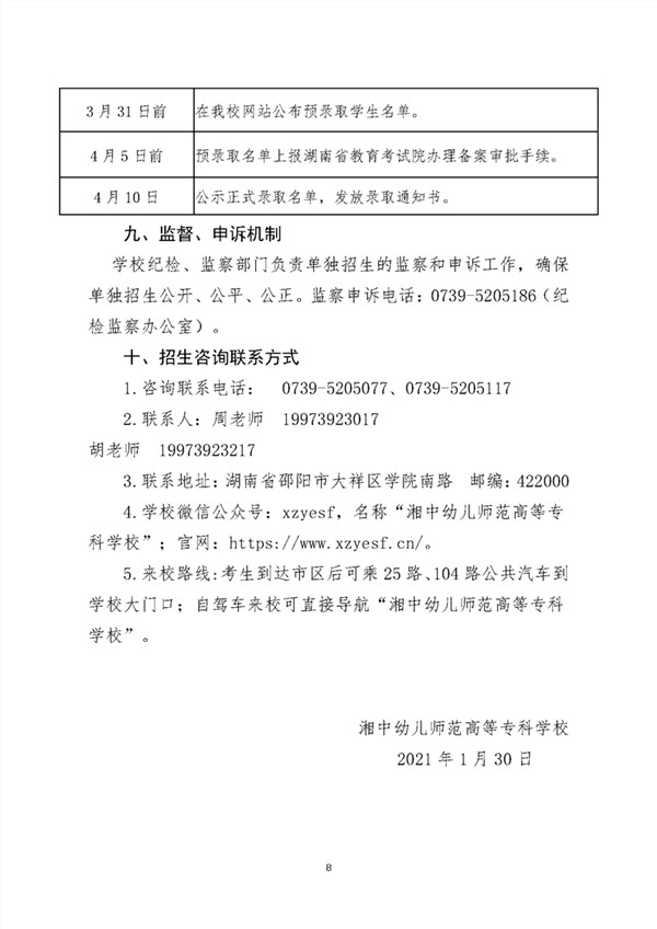 湘中幼儿师范高等专科学校2021年单独招生简章